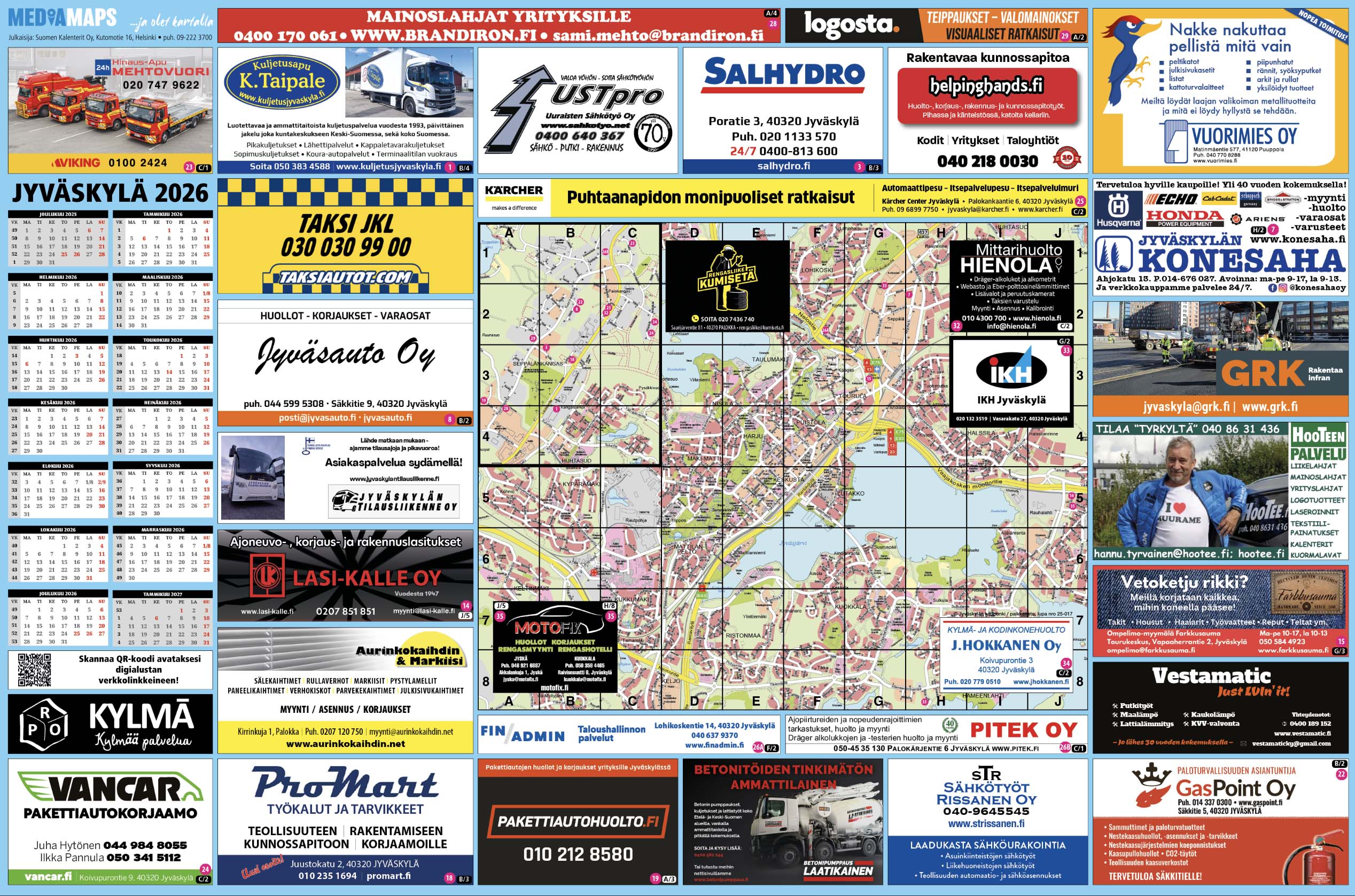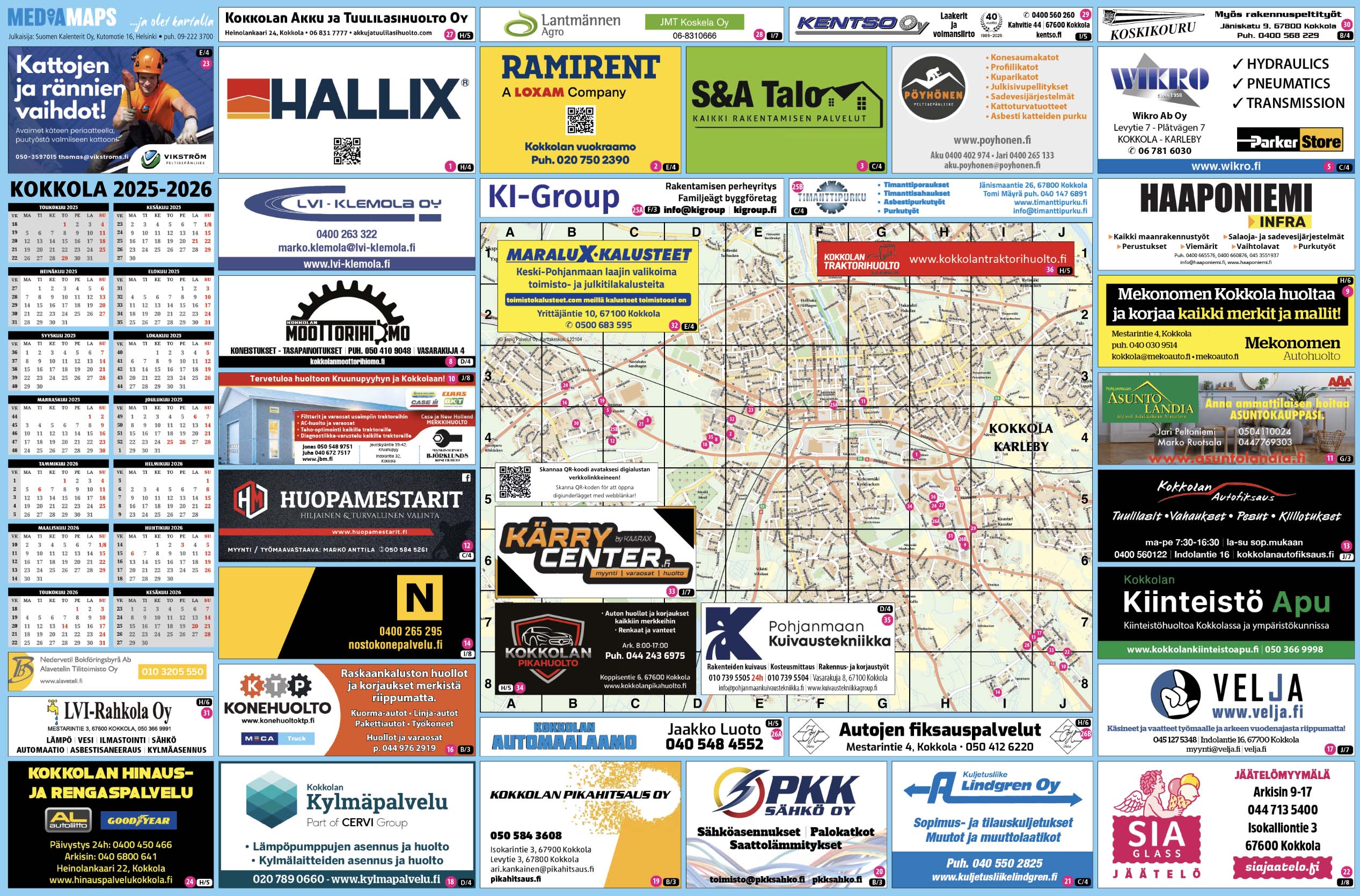 Palvelukarttakonseptimme sisältää ammattitaitoisen karttojen suunnittelun sekä käännöstyöt, mainosmyynnin, postituksen, painon ja jakelun.
